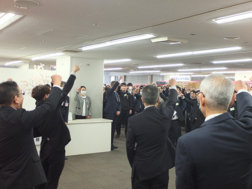 |  東大阪支店徳永さんによる「ガンバロー」コール