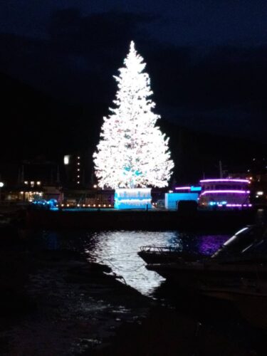 赤レンガ倉庫前では、はこだてクリスマスファンタジーが開催されており、色々な場所がライトアップされ、とても奇麗でした。