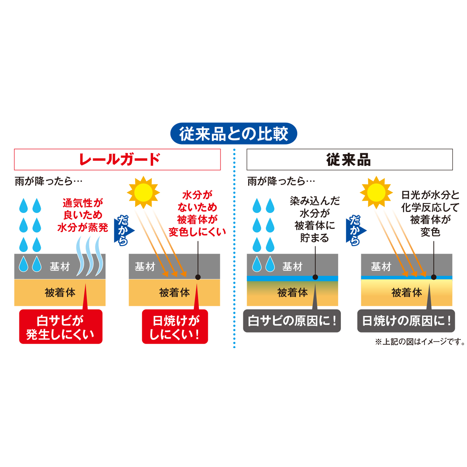 ・通気性の良い基材なので白サビが発生しにくく、下地も日焼けしにくい。