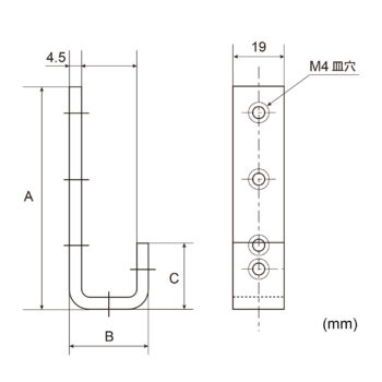 ●穴径:φ4.5mm。●板幅:19mm。●板厚:4.5mm。