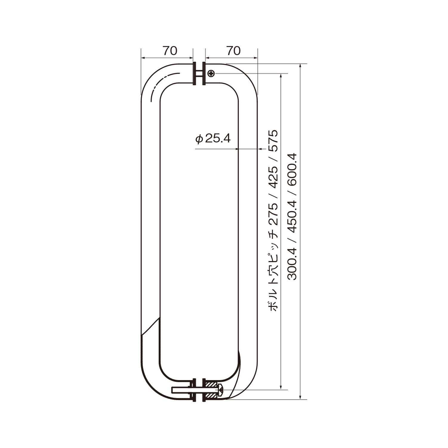 ・高級感のあるステンレス製ドアハンドル。 ・鏡面仕上とヘアライン仕上がございます。 ・長さは300・450・600mmの3サイズ。 ・扉厚は10mmから55mmまで対応。 ・締付ボルトM8×70mmは扉厚:10~40mmに対応。 ・締付ボルトM8×90mmは扉厚:40~55mmに対応。 ・ガラスドア用ゴム付属。